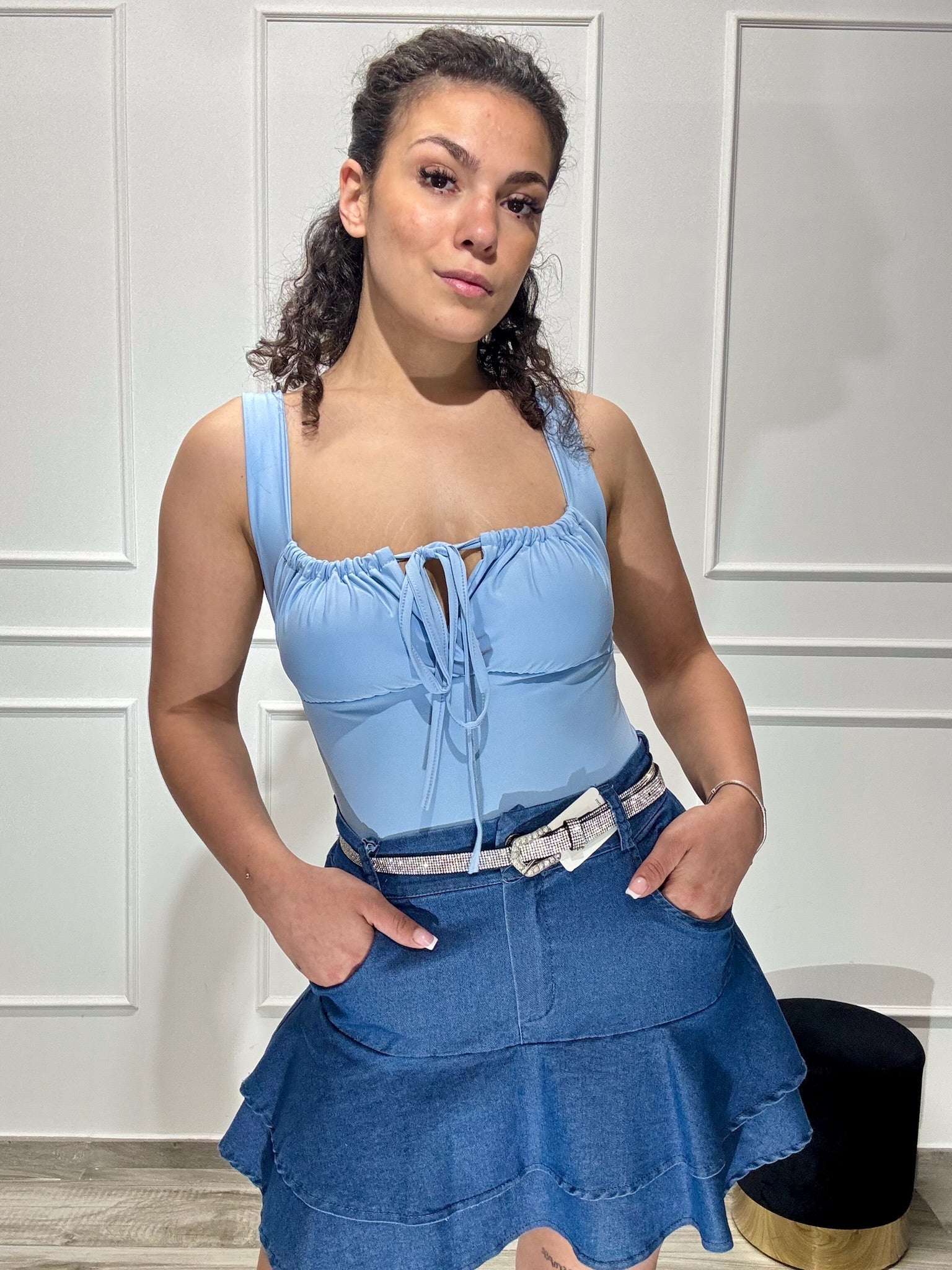 Body in licra con spallina larga e coppe incorporate