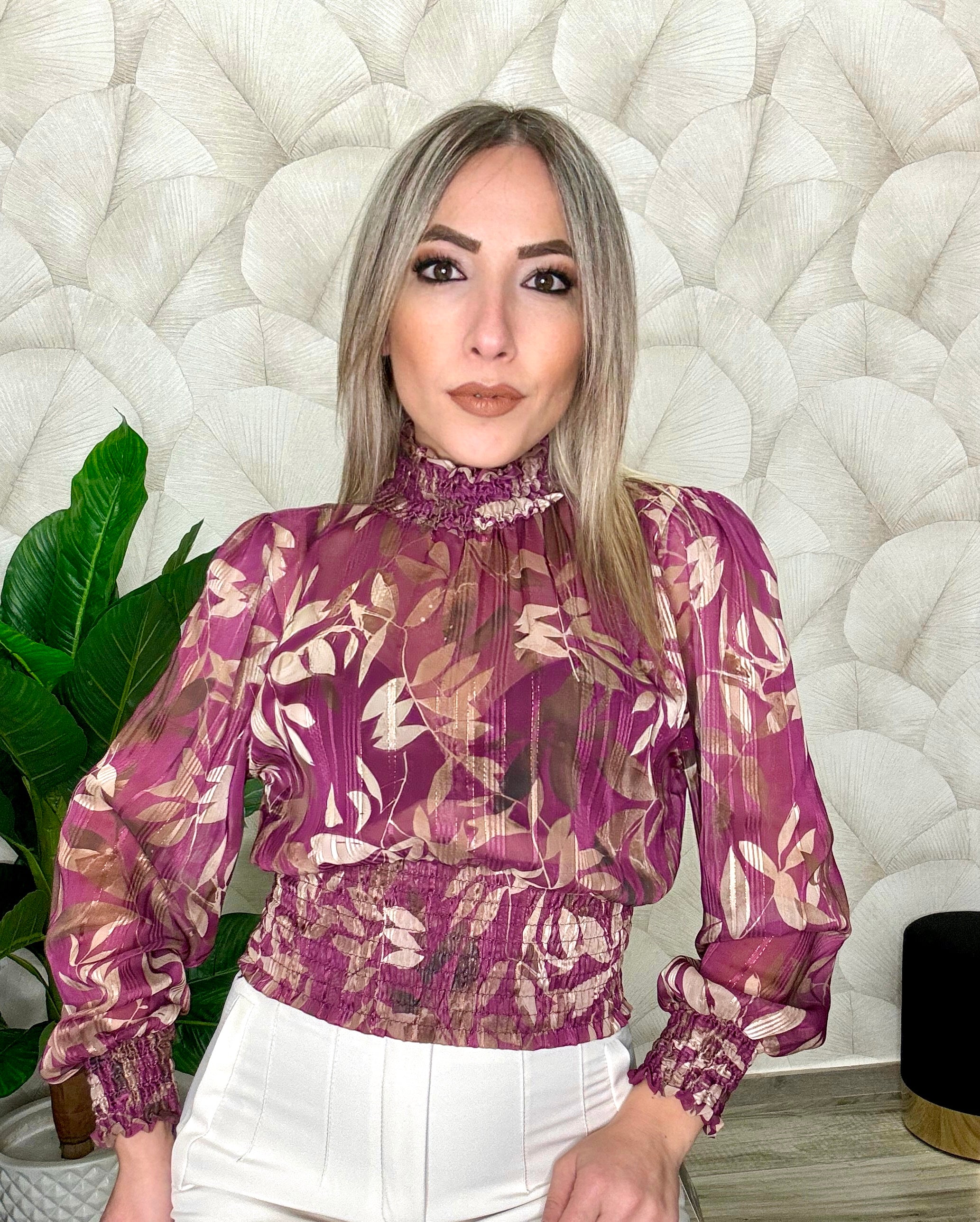 Camicia in chiffon modello crop, mezzo collo e elastico in vita. Taglia unica ma con un ottima vestibilita dalla XS alla L. La modella in foto veste tg S ed è alta 165 cm