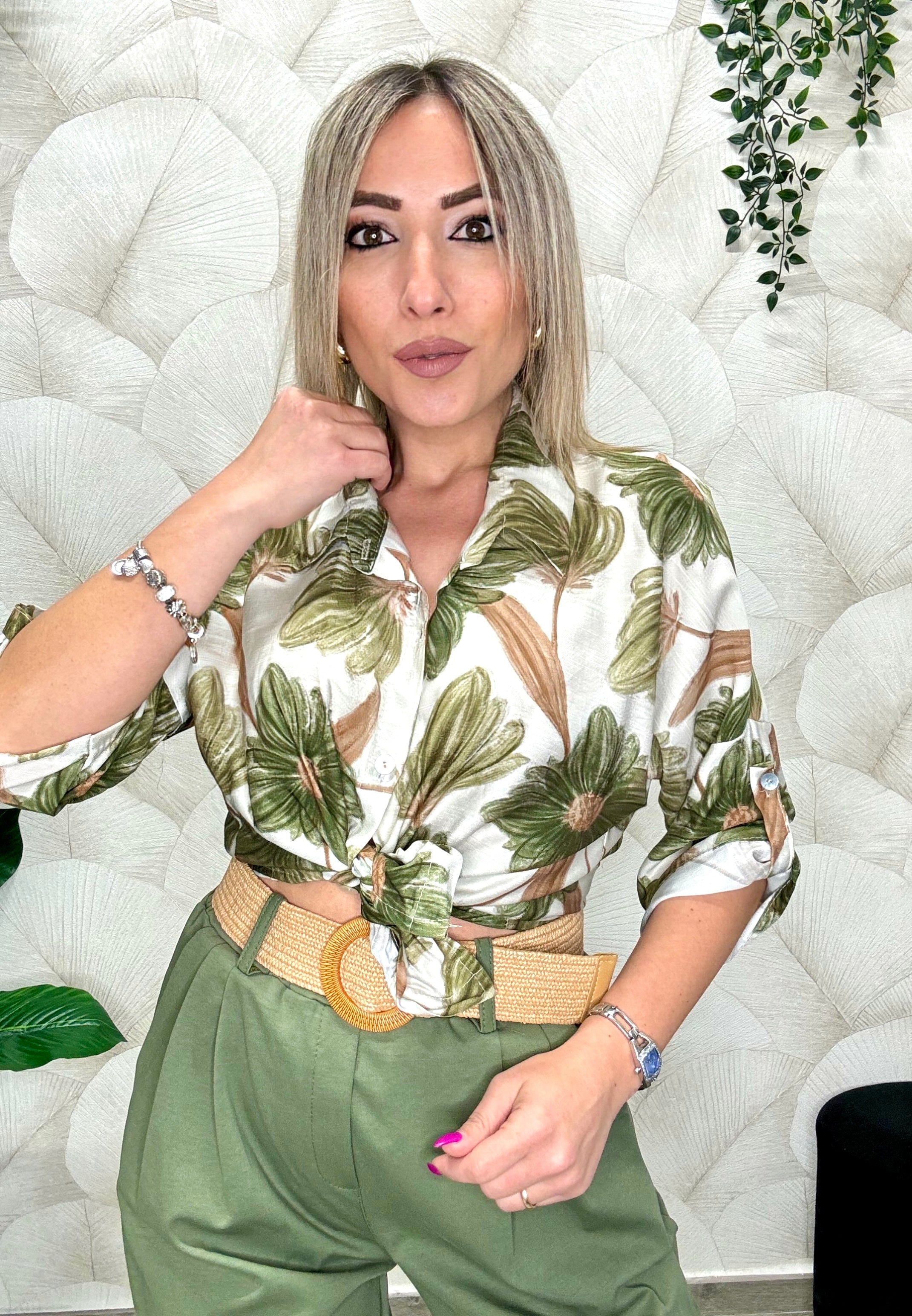 Camicia fantasia floreale in viscosa, lunghezza regolare. Disponibile in taglia unica con un ottima vestibilità dalla S alla L. La modella in foto veste tg. S ed è alta 165 cm