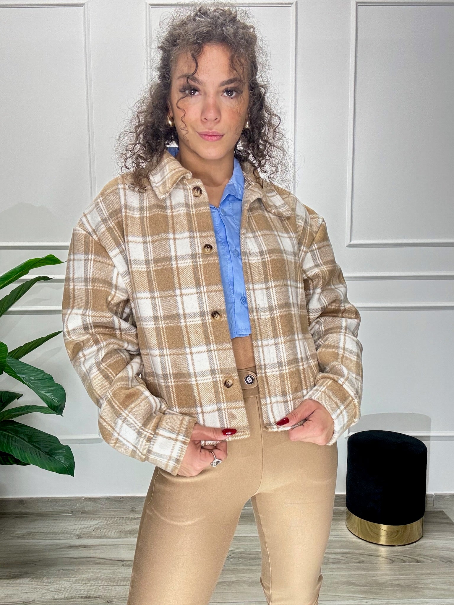 Camicia giacca fantasia scozzese, in flanella. Modello leggermente oversize. Disponibile in taglia unica ma con un ottima vestibilità dalla XS alla XL. La modella in foto veste tg. Xs