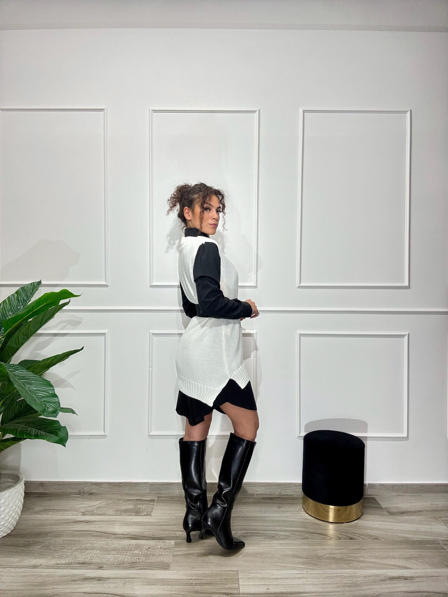 Coordinato composto da camicia e gilet modello oversize, cintura non inclusa. Disponibile in taglia unica ma con un ottima vestibilità dalla XS alla XL. La modella in foto veste tg. XS