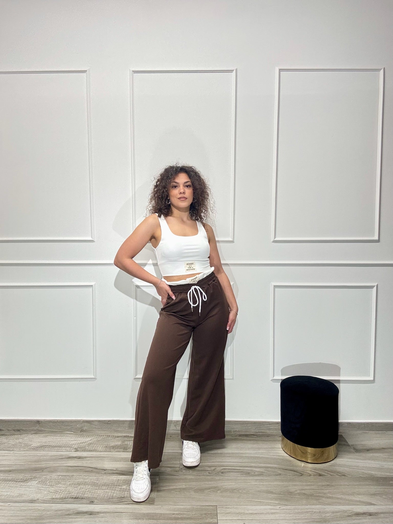 Coordinato tuta composto da Pantapalazzo con doppio bordo elastico con laccetto e top crop a costine