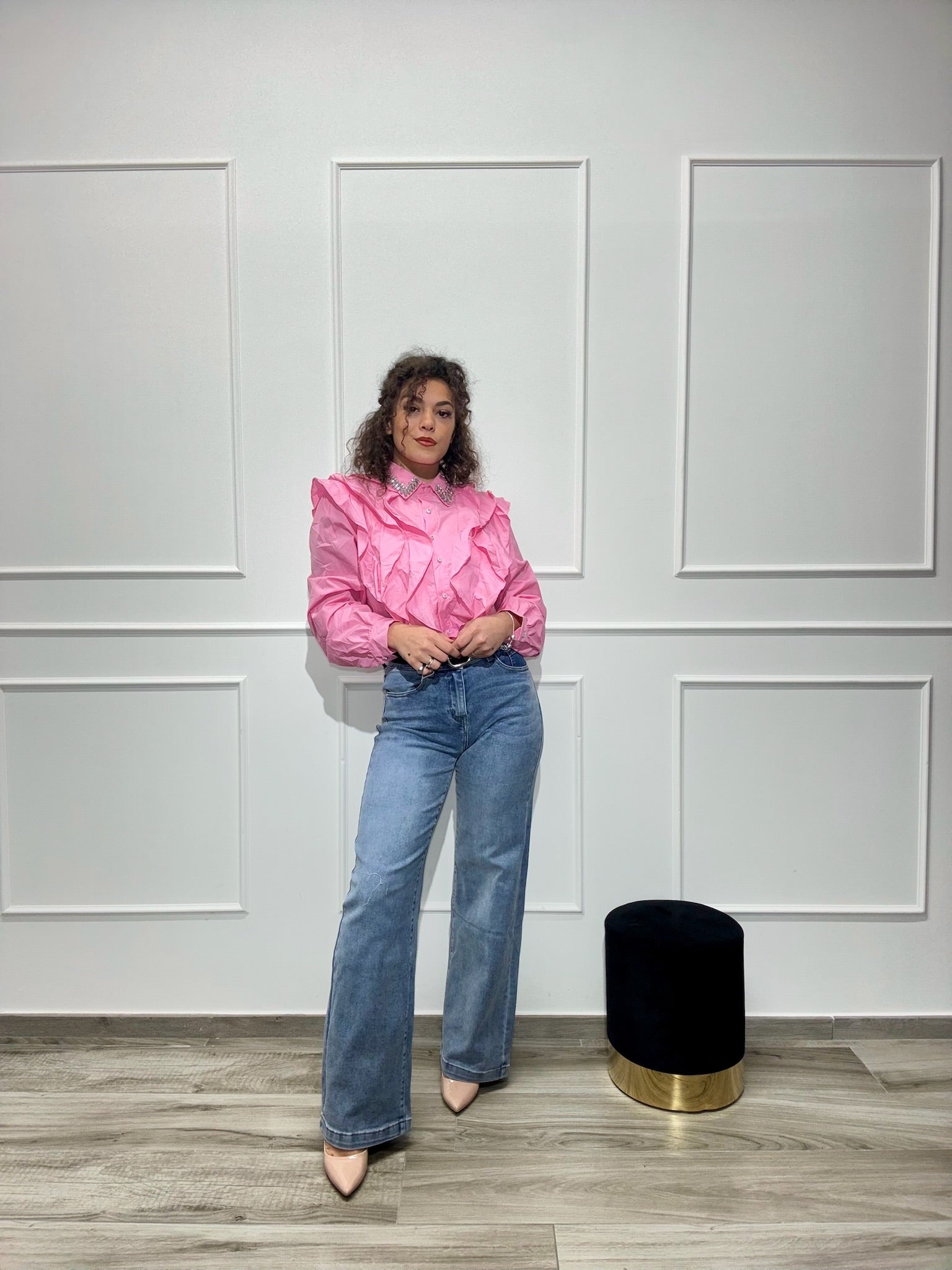 Jeans modello palazzo, tessuto elastico, cintura inclusa.