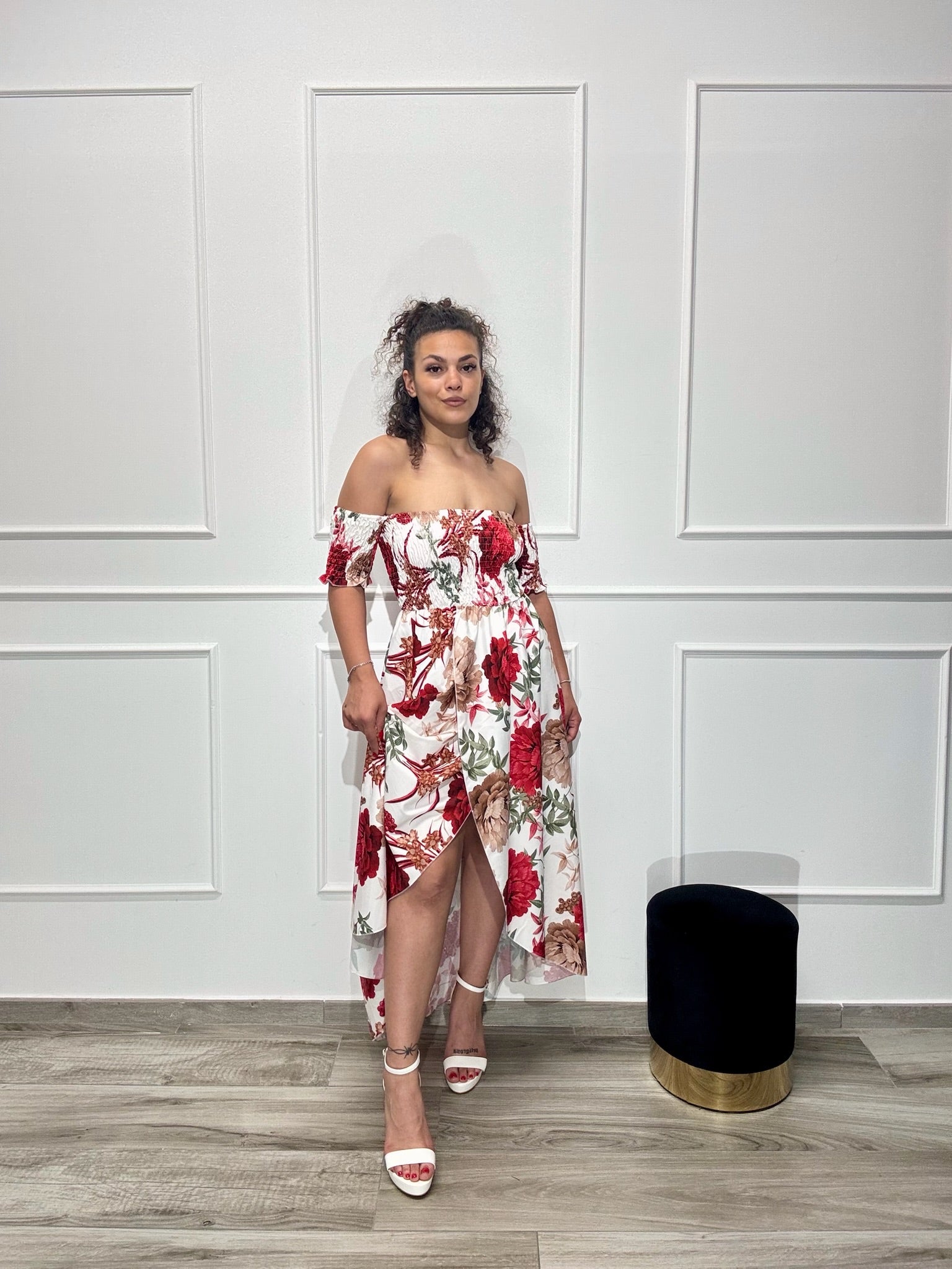 Abito a fascia elastica con manicotti, spacco asimmetrico sul dvanti