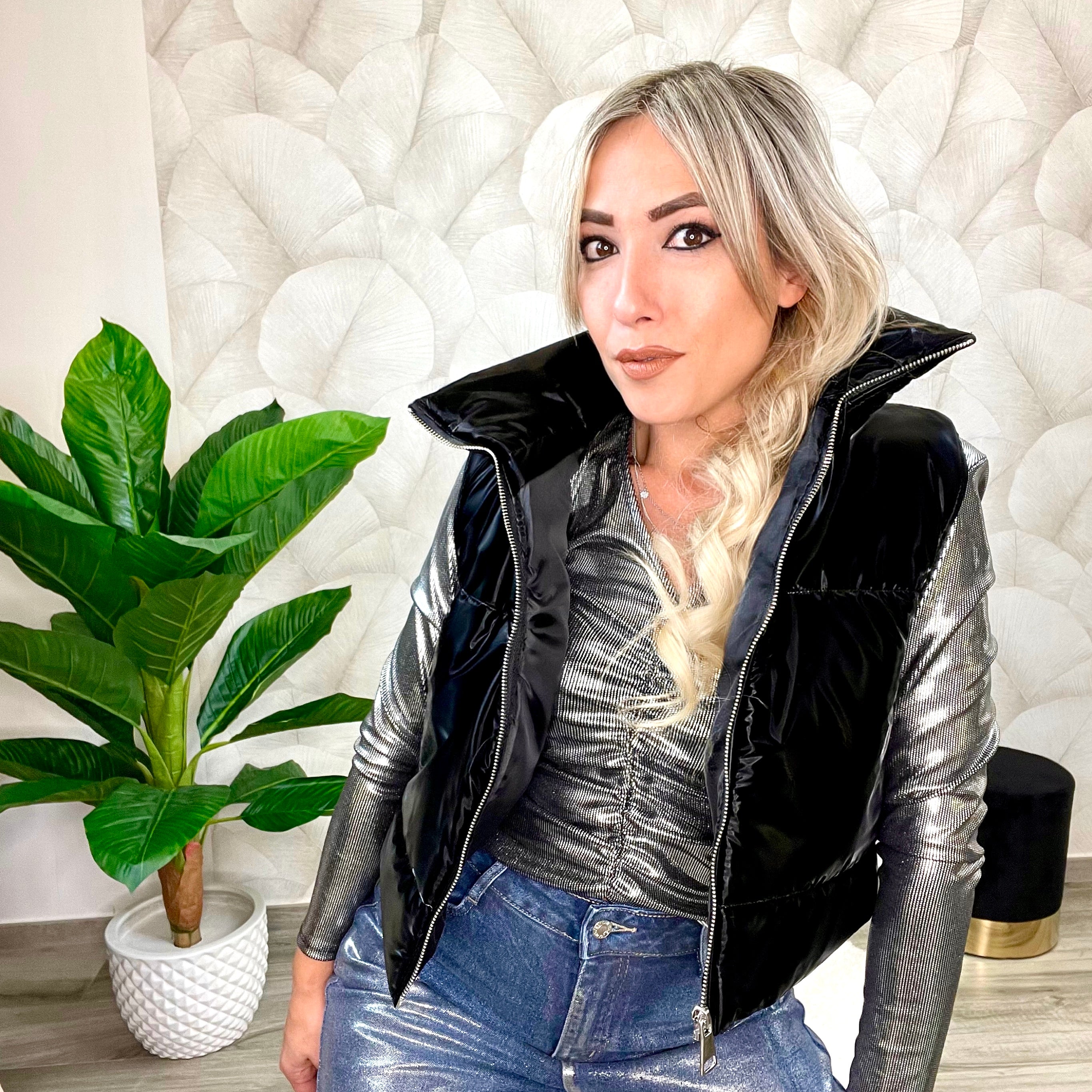 Ideato in morbida tessitura satinata, il gilet imbottito è pronto a diventare un capo indispensabile del tuo guardaroba. La taglia unica con vestibilità da S a L permette di indossarlo a qualsiasi corporatura, come dimostrato dalla modella nella taglia S.