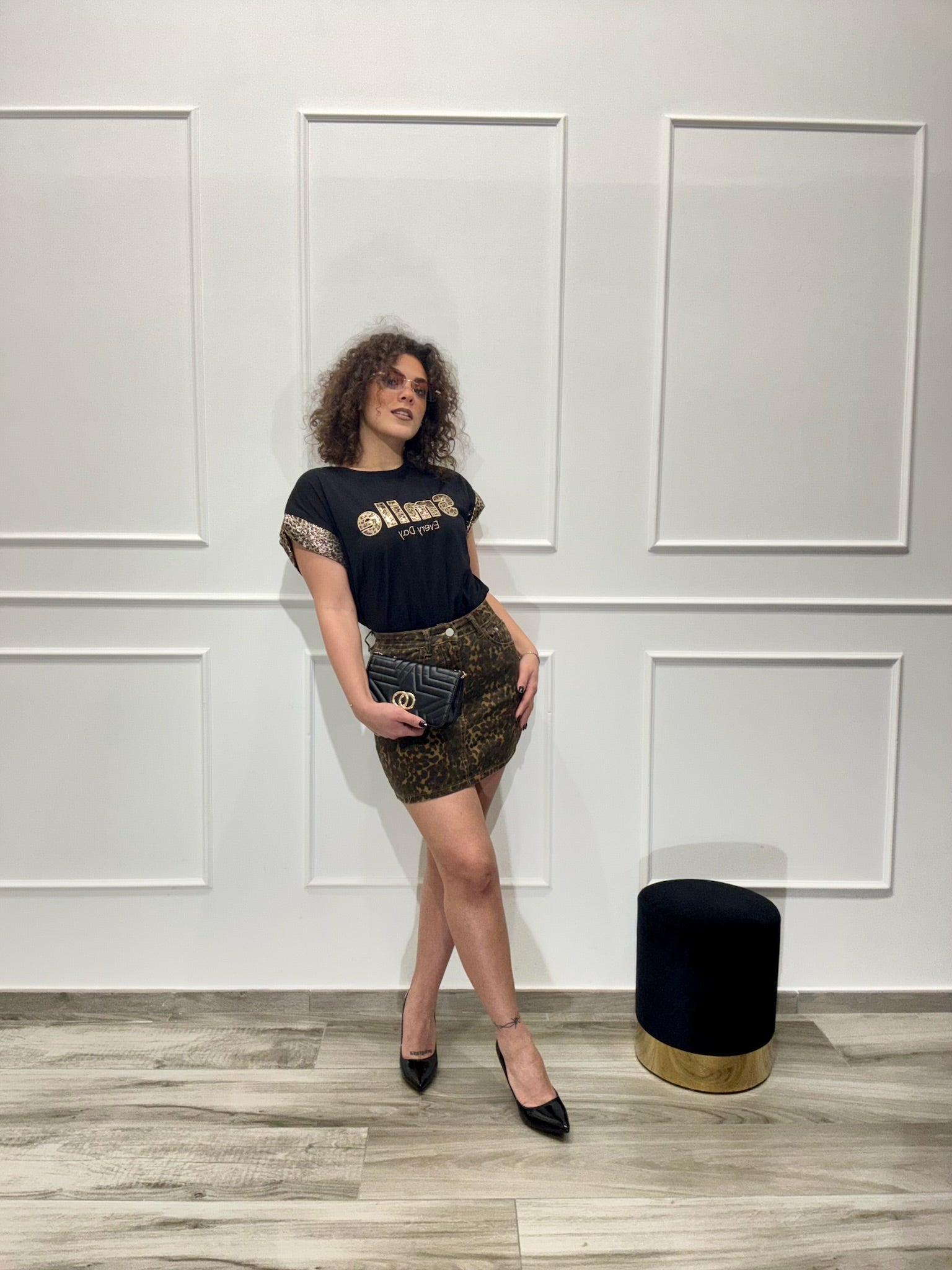 Gonna tessuto jeans elasticizzato, fantasia animalier