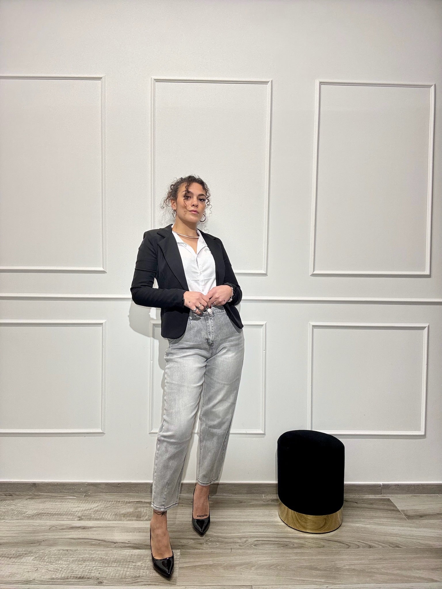 Jeans modello Mom Fit elastico.