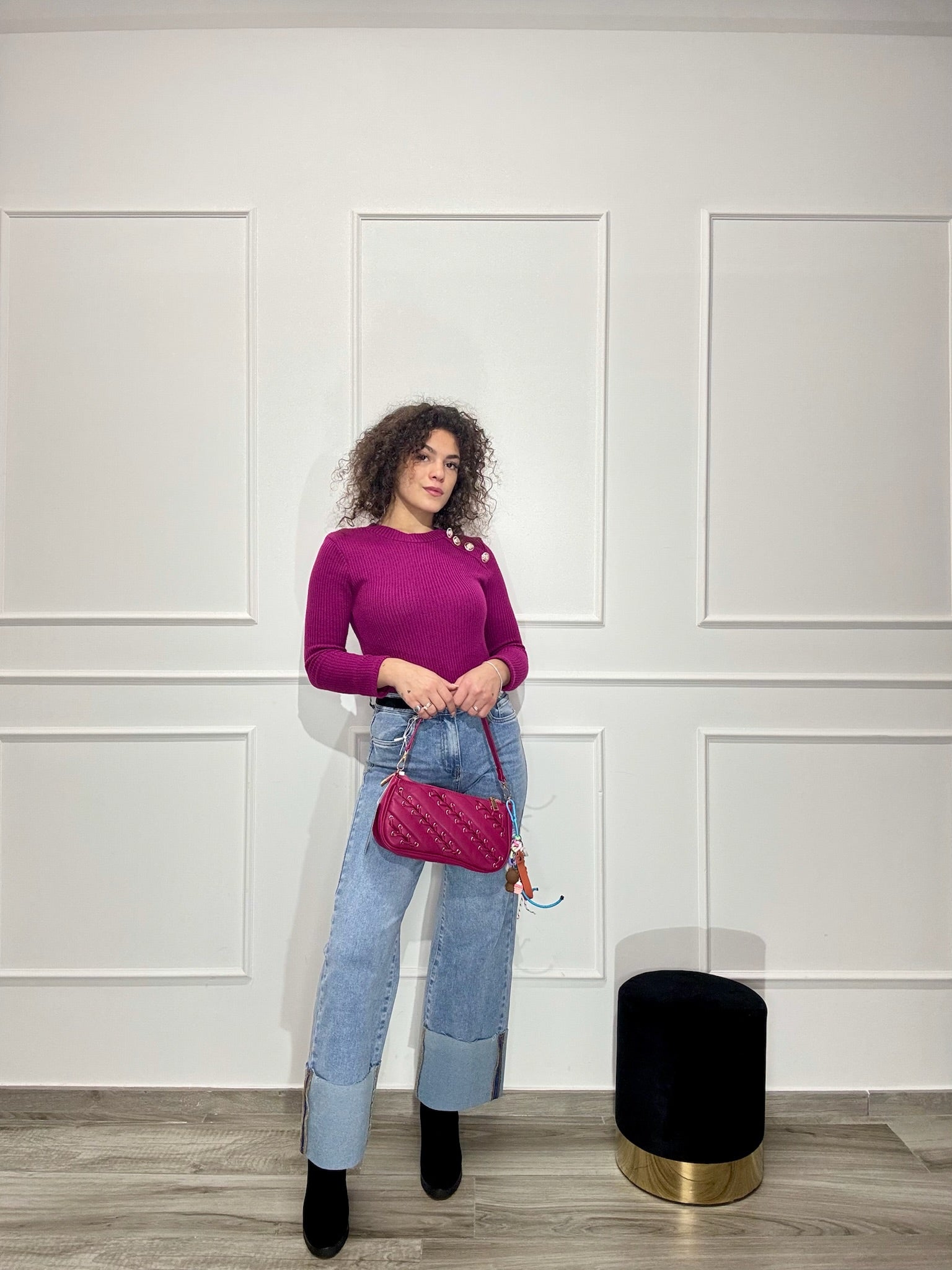 Jeans gamba dritta con risvolto alla caviglia. Tela elastica, vestibilità regolare. La modella in foto indossa tg. XS