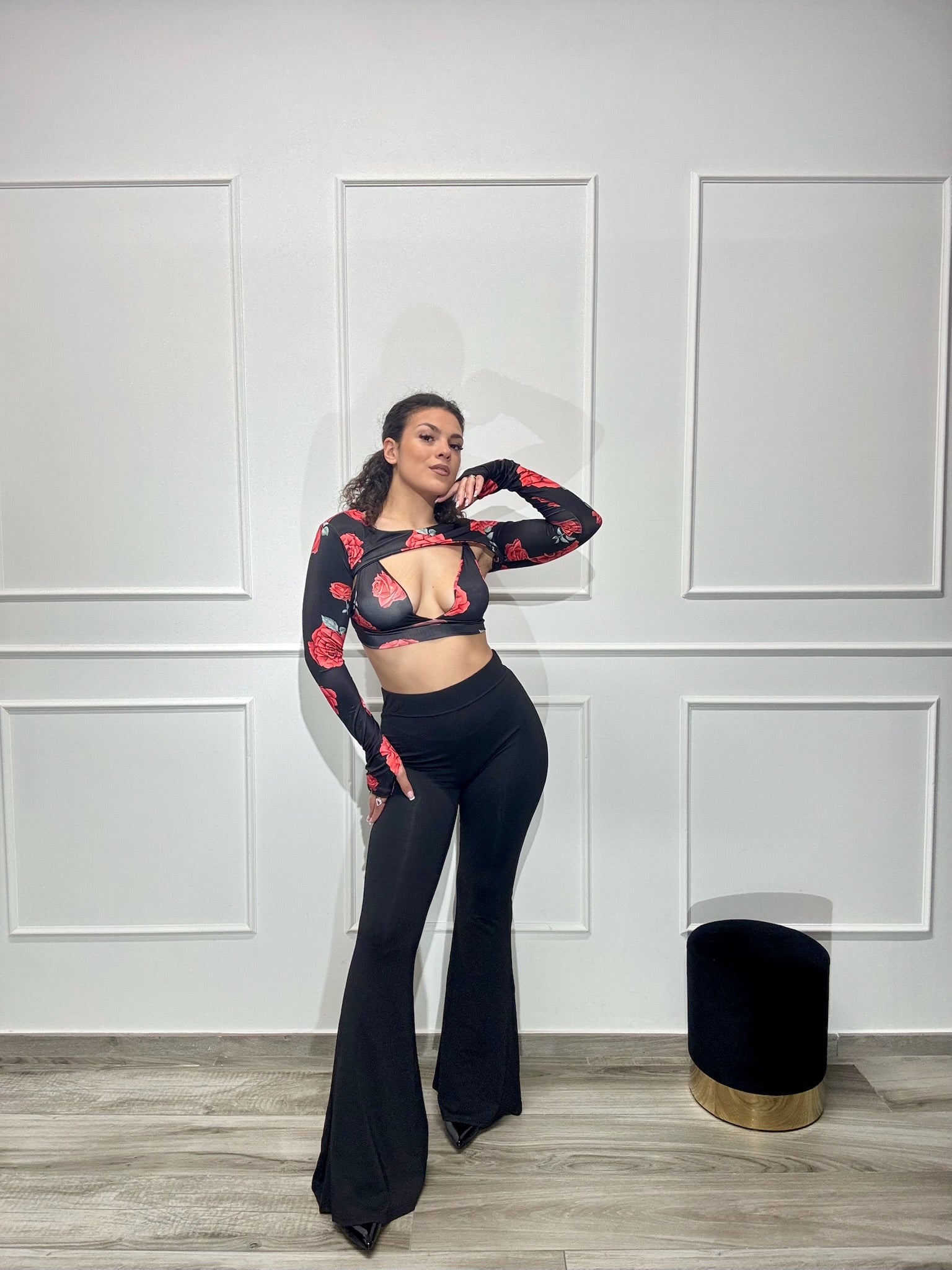 Coordinato in licra composto da maglia coprispalle manica a guanto e Bralette con coppe preformate e bratelline regolabili