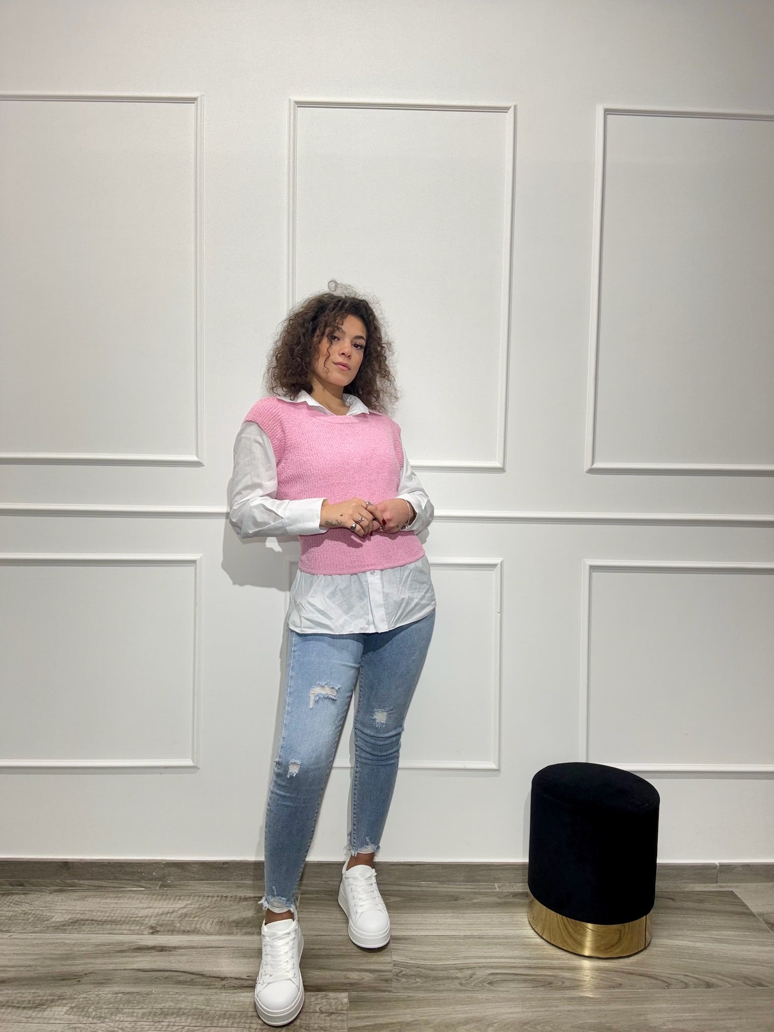 Maglia in cotone smanicata con chiusura sul retro. Camicia non inclusa.