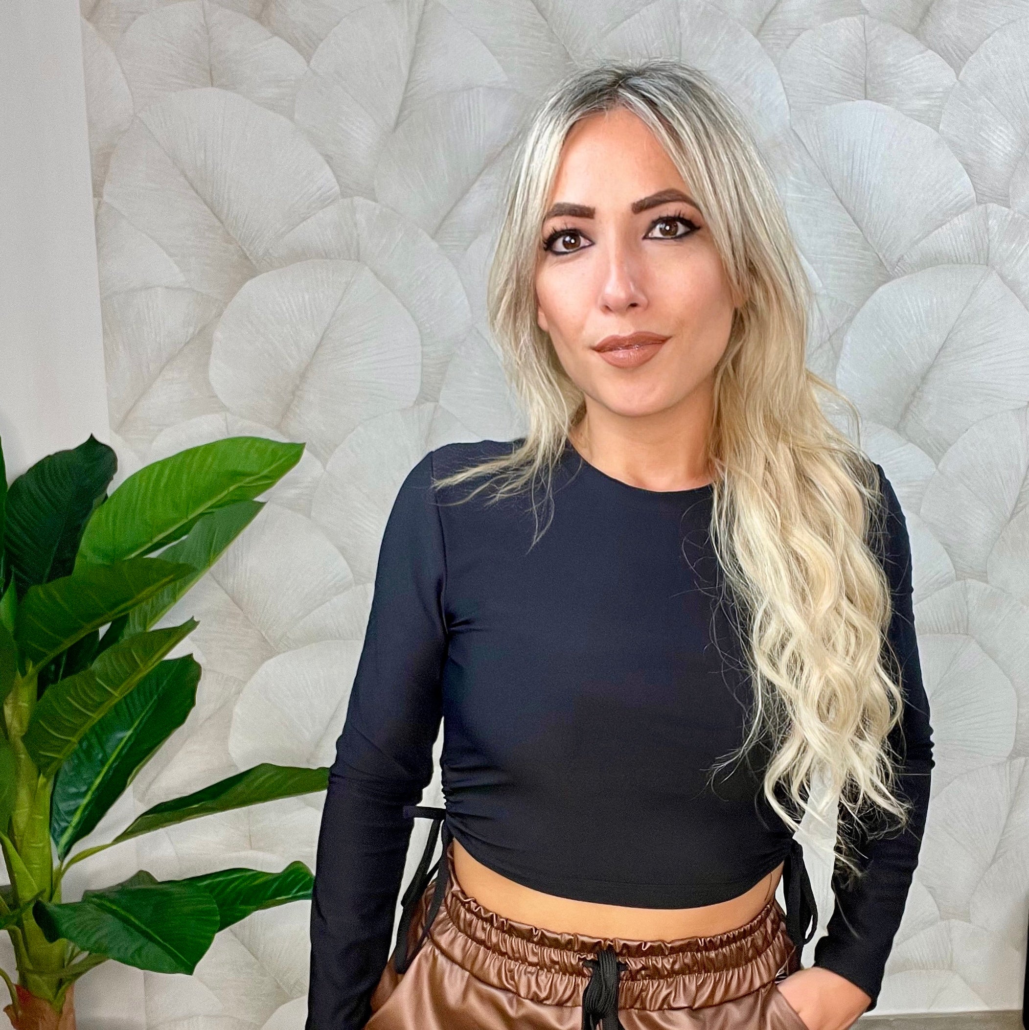 Maglia dal design moderno, realizzata con licra di alta qualità e dotata di un collo giro ed un'apertura laterale con laccetti regolabili, per garantire una vestibilità dalla taglia XS alla taglia M. Tessuto elastico per un comfort ottimale.