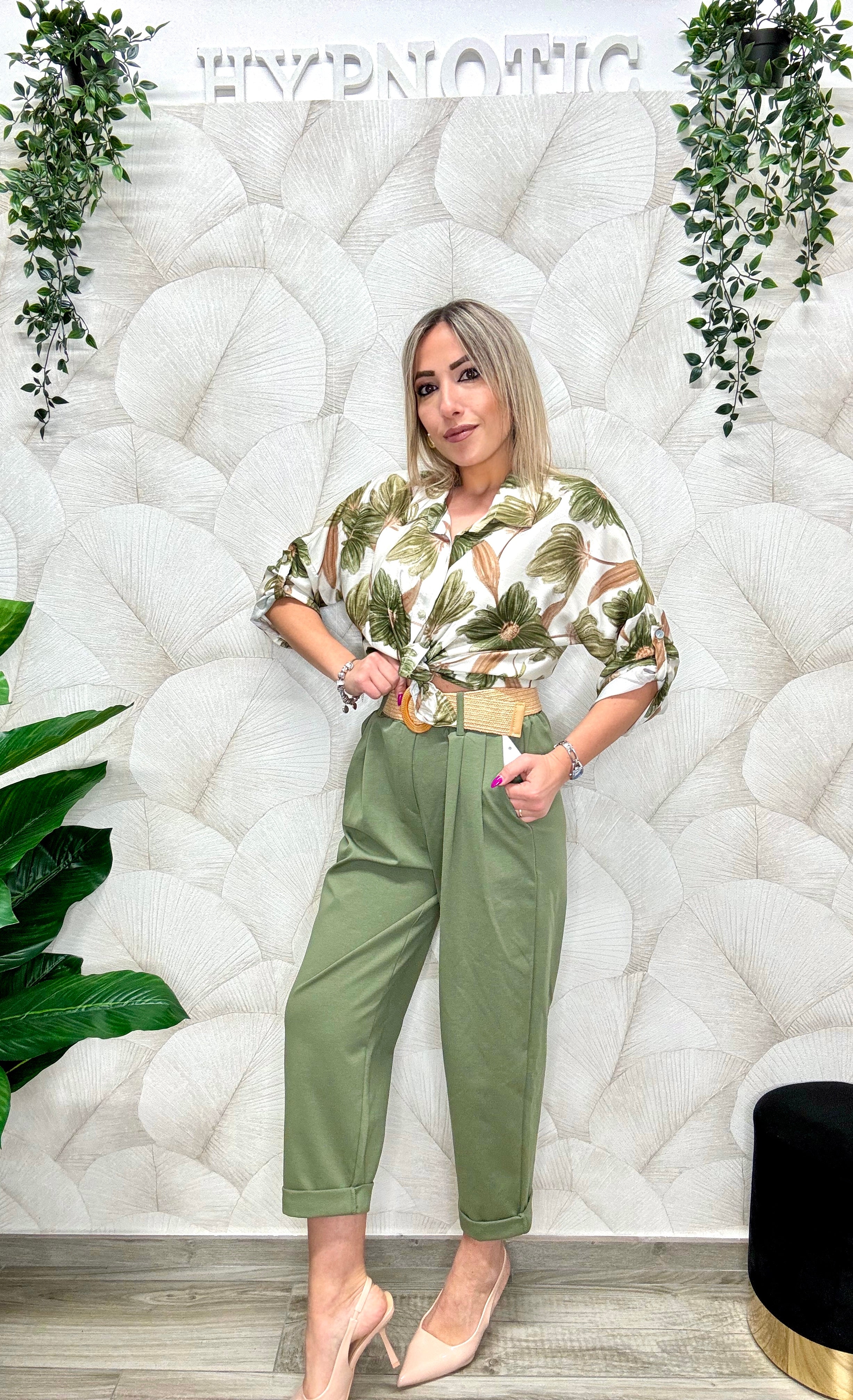 Pantalone in cotone con riprese sul davanti e cinturone incluso, tessuto estremamente morbido ed elastico, si adatta perfettamente dalla S alla XXL. Taglia unica. La modella in foto veste tg.S ed è alta 165 cm.