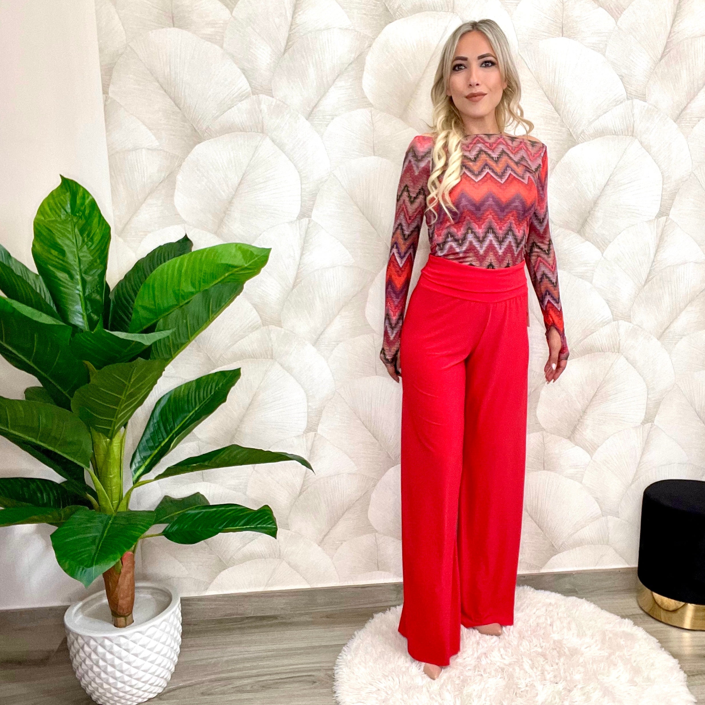 Pantalone Mirella con vita regolabile in altezza e senza chiusura, realizzata in licra estremamente elastica, offre un'ottima vestibilità dalla taglia S alla XXL.