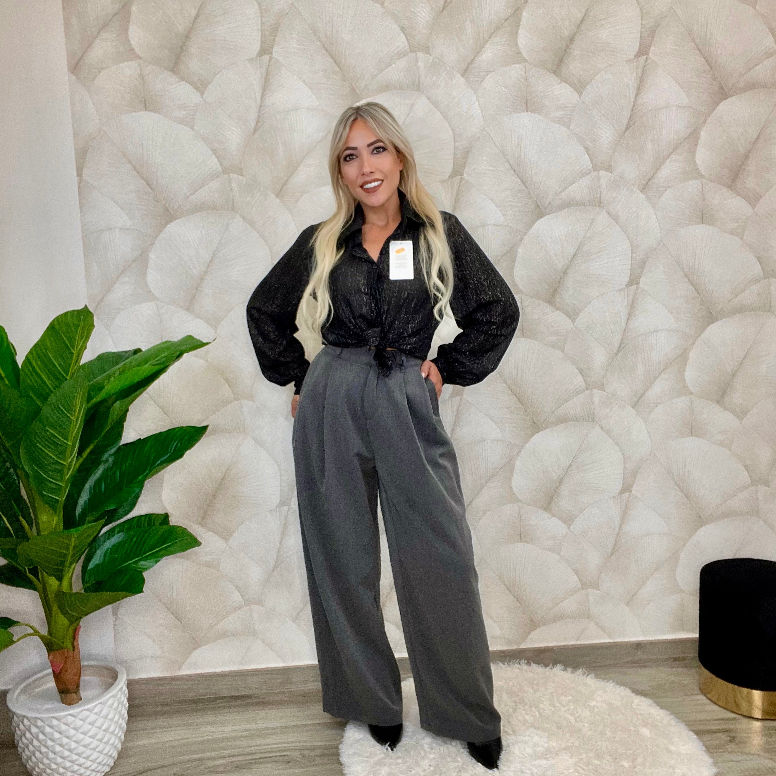 Pantalone palazzo con doppia pence, ideale per un look di maggiore ampiezza.