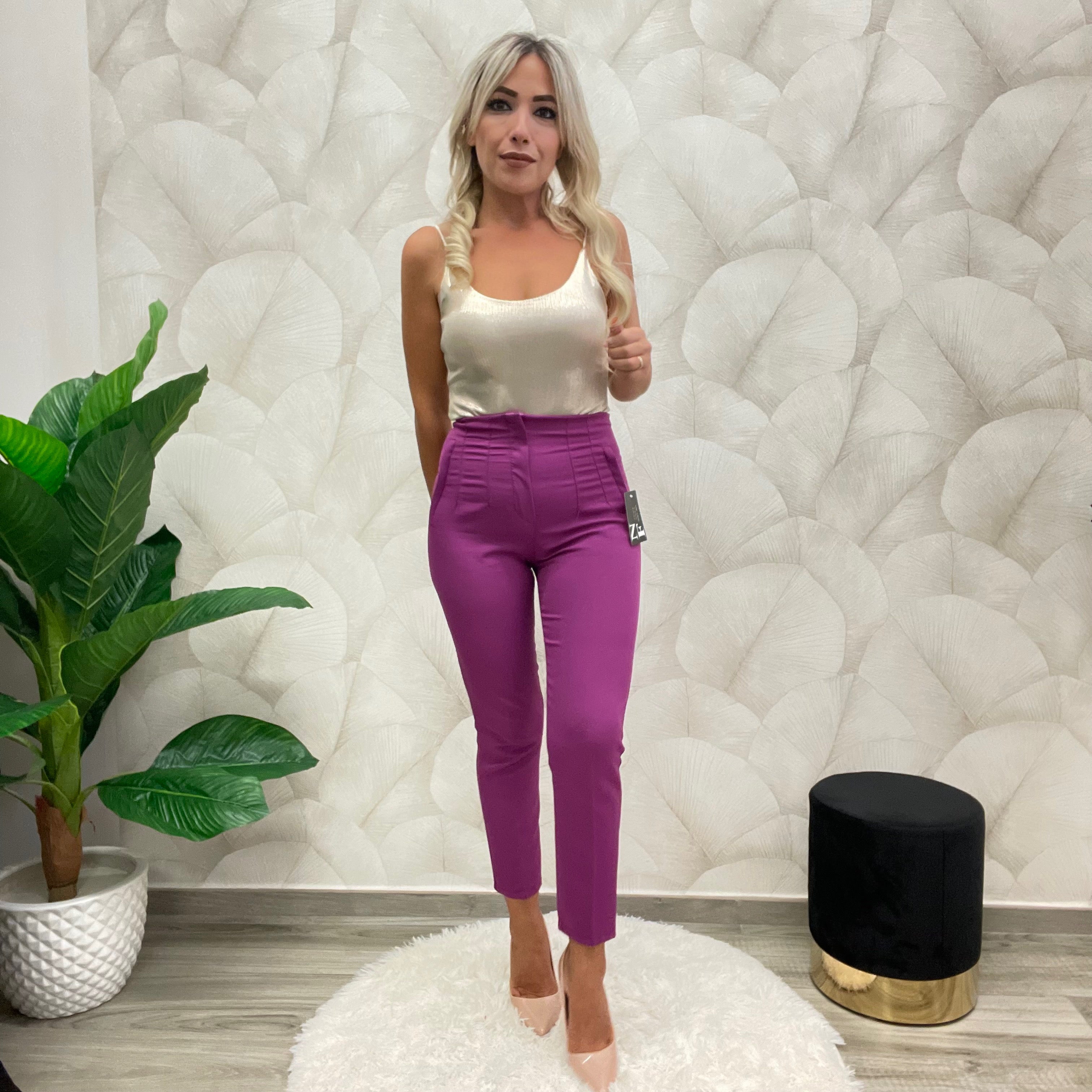 Pantalone Vita Alta con cuciture che aiutano a creare una silhouette snella e sofisticata; disponibile nelle taglie S, M, L e XL. La modella in foto è alta 165cm e indossa la taglia S.