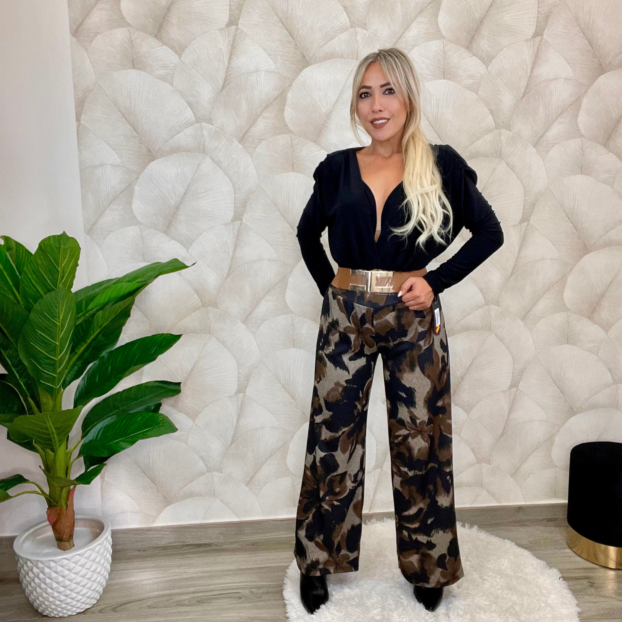 Pantaloni palazzo a fantasia realizzati in morbida stoffa con elastico in vita che assicura una perfetta vestibilità da S a L.