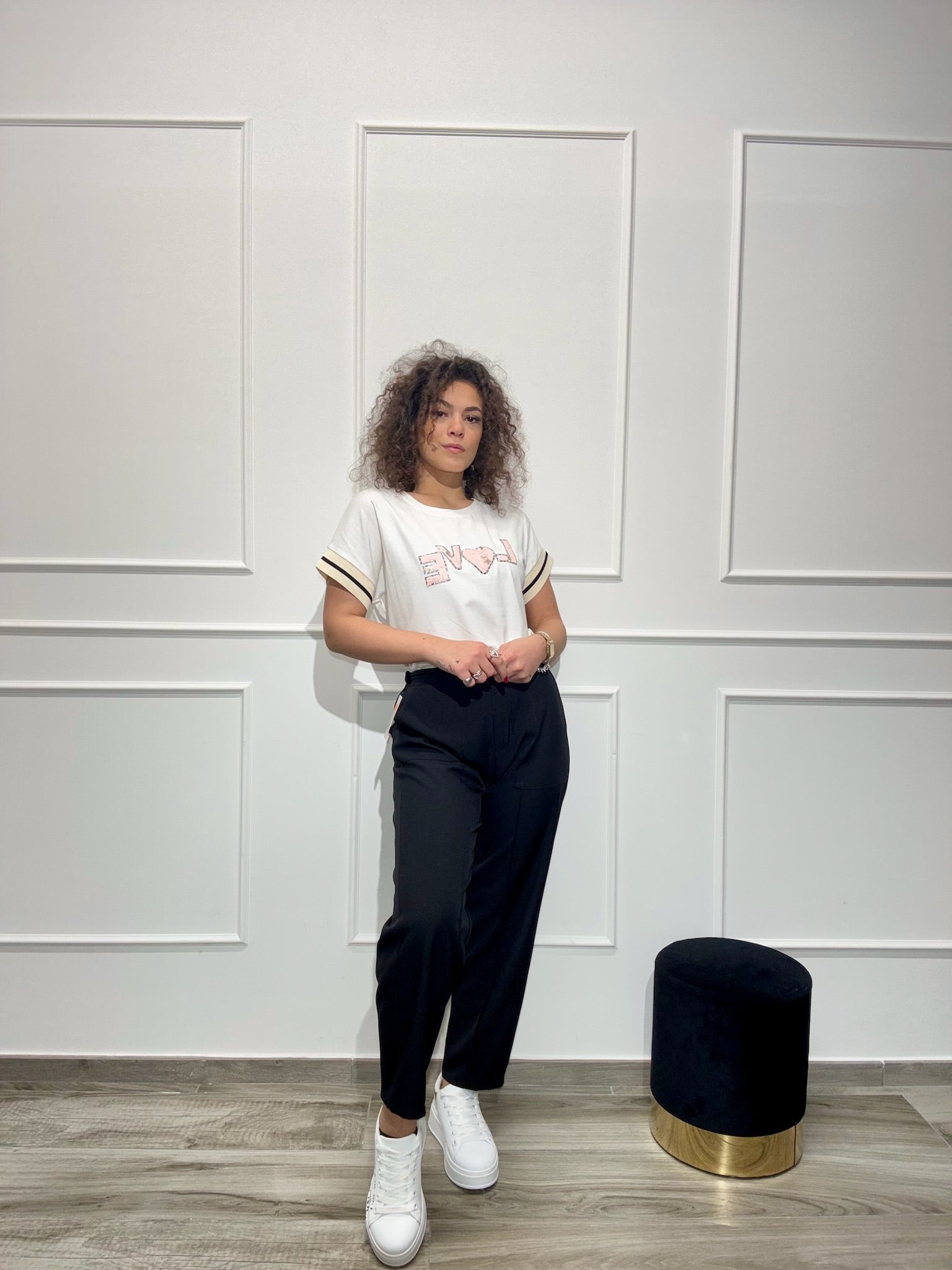 Shirt in cotone con scritta luminosa sul davanti, lunghezza regolare.