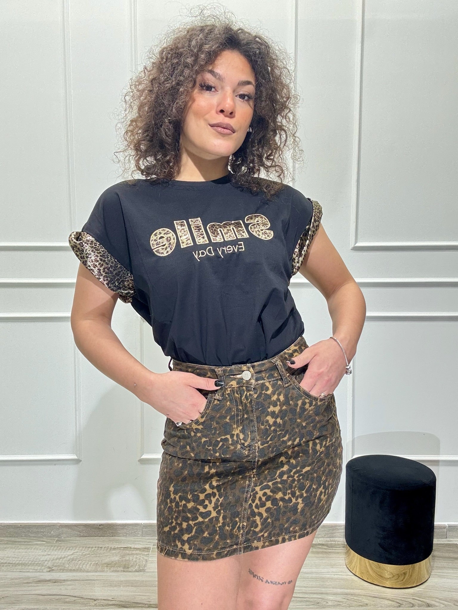 Shirt in cotone con dettagli animalier, tessuto elastico