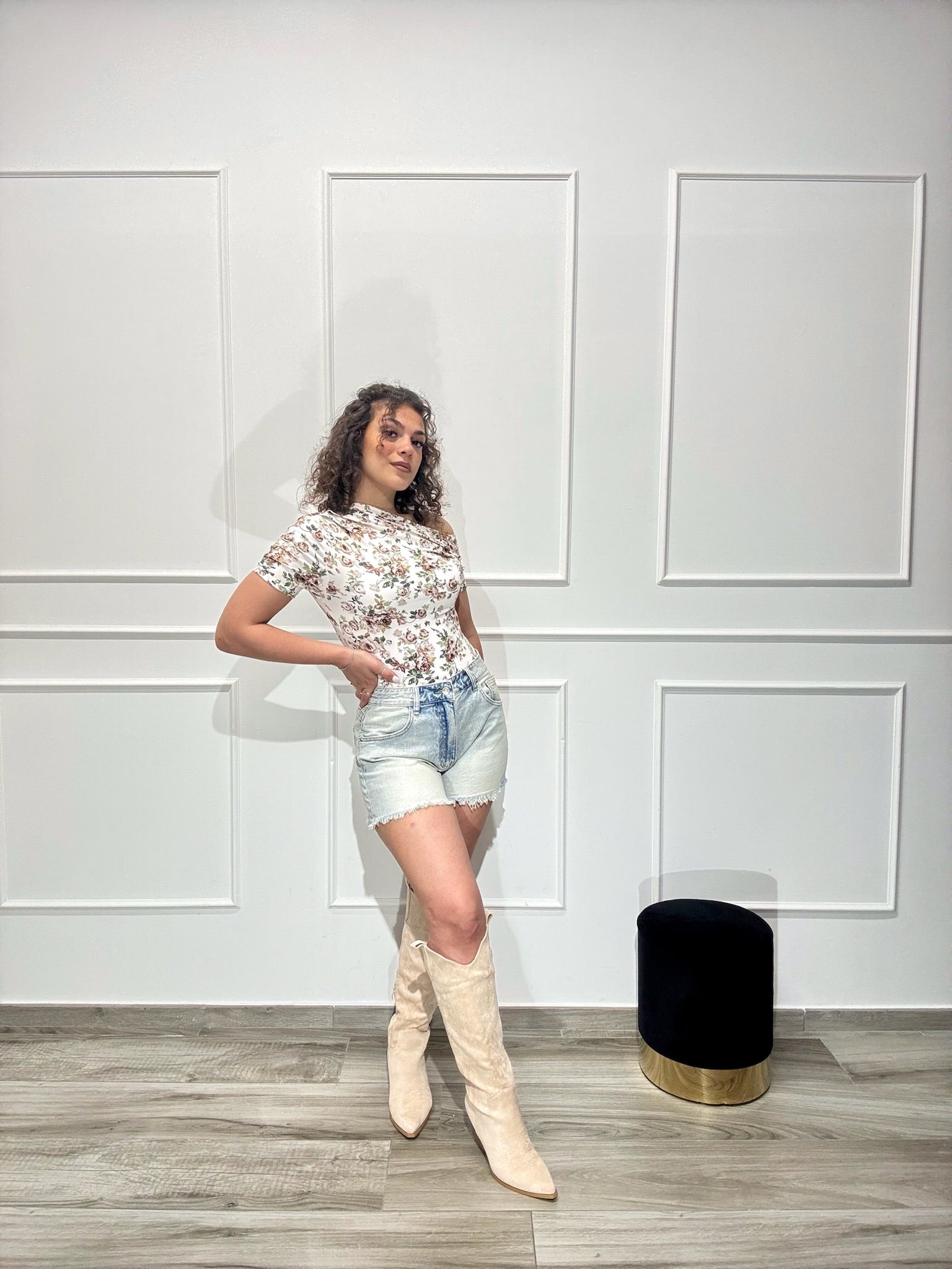 Shorts Denim lavaggio sabbiato, tessuto elastico
