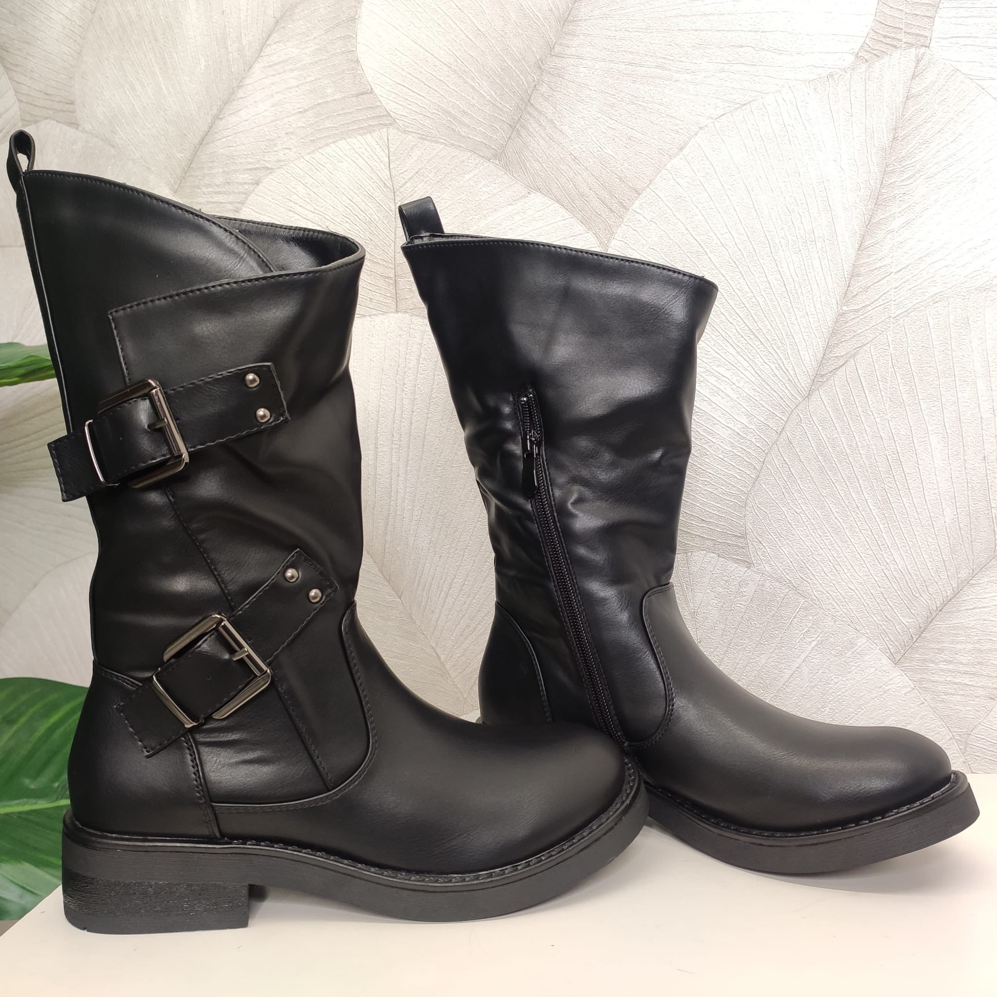 Stivale basso linea comoda suola in gomma con doppia fibbia e mezza cerniera. Calzata regolare. Disponibile dal 37 al 41