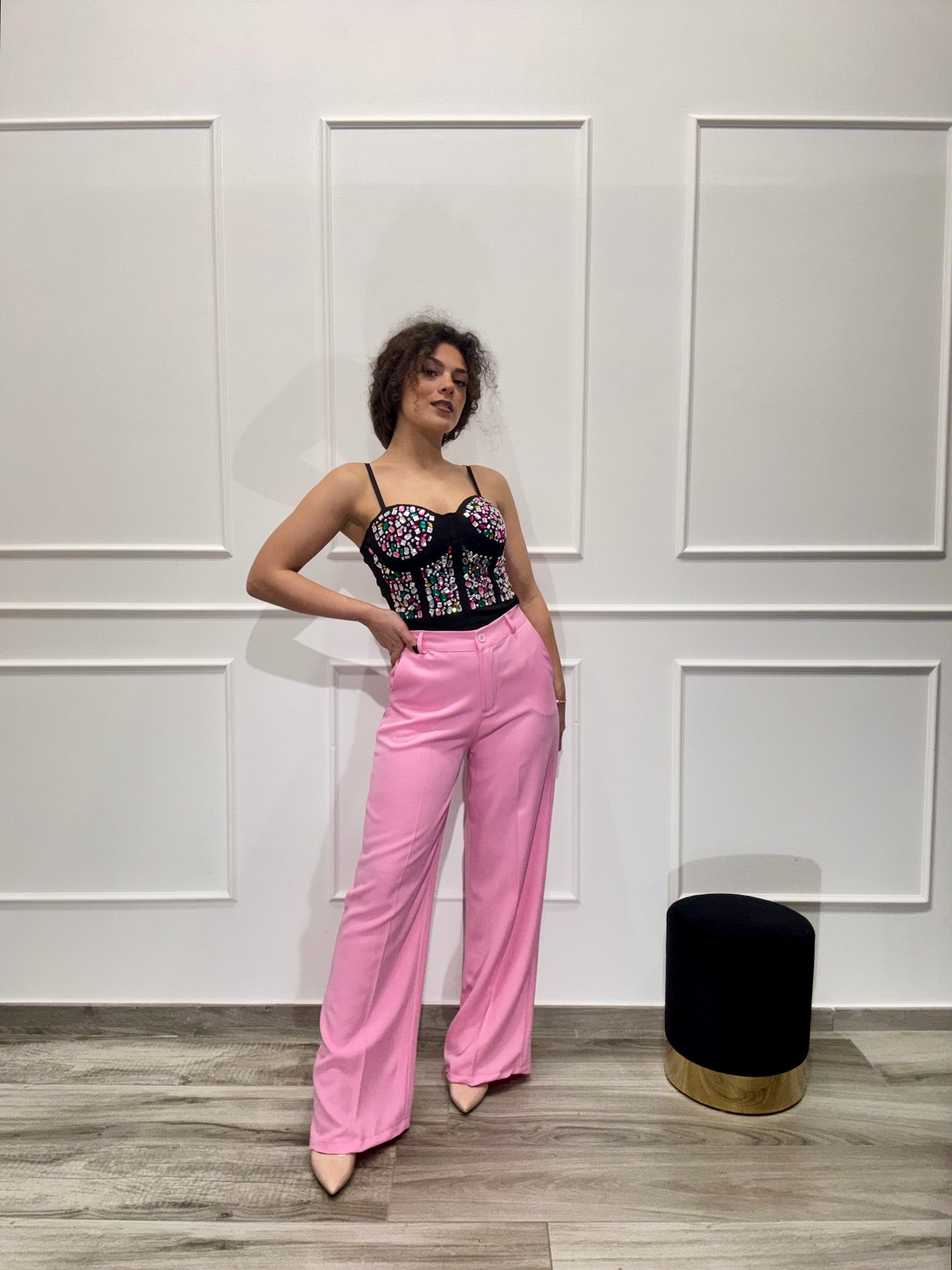 Top con pietre multicolori, coppe preformate e bratelline regolabili, chiusura a zip sul retro