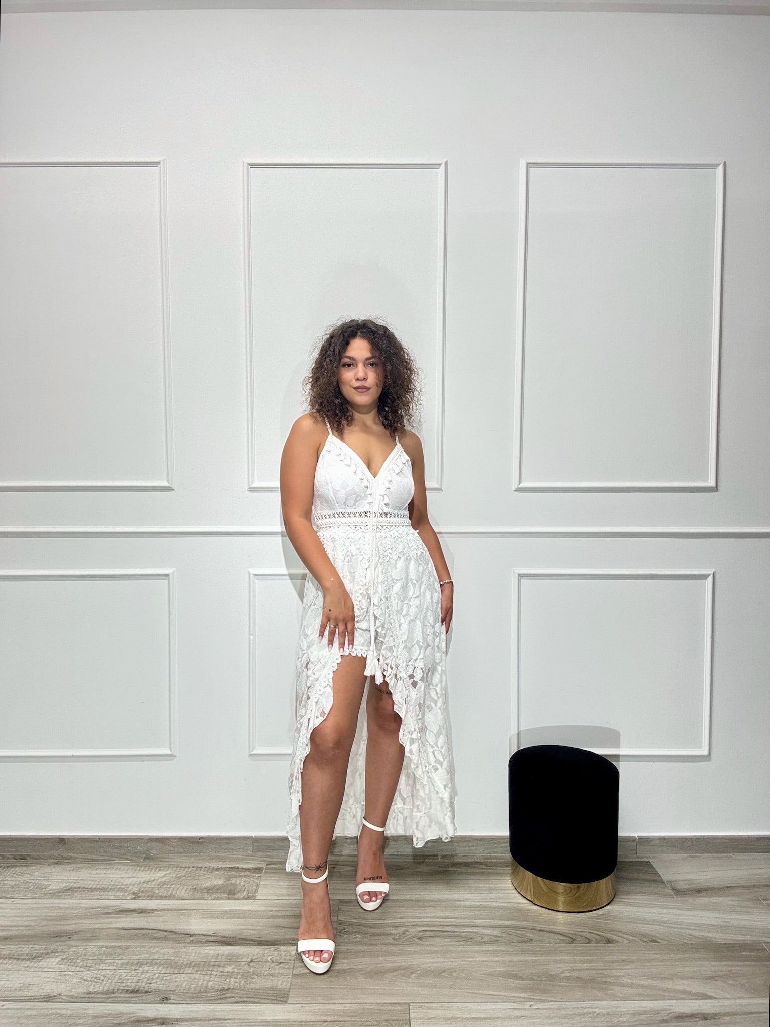 Tutina ricamata con spalline regolabili ed elastico sul retro